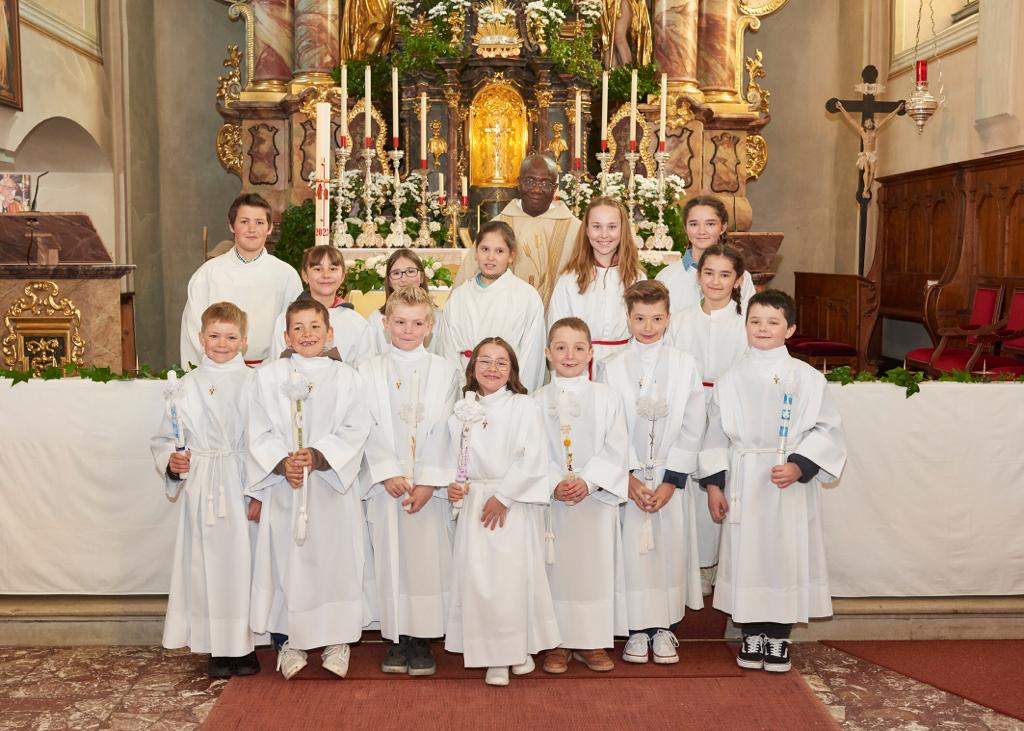 Auch heuer bereiteten sich acht Kinder aus unserer Pfarre gemeinsam mit ihren Eltern und der Religionslehrerin Frau Elisabeth Ganner auf das Fest der ersten Heiligen Kommunion vor. Die Worte: „Ich bin ein Sonnenstrahl Gottes“ begleitete sie während der gemeinsamen Gruppenstunden und an den Sonntagen, wo Antonia, Seraphina, Jakob, Paul, Lukas, Raphael, Matteo und Tobias jeweils einen kleinen Beitrag zur Gestaltung der Messfeier einbringen konnten.