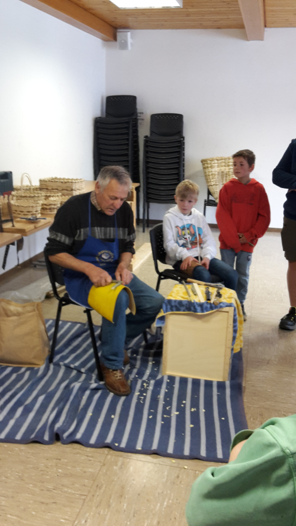 Hans erzählte, dass er schon als Kind seinem Vater und Großvater helfend zur Hand ging und so zum Korbflechten kam. Unzählige Handgriffe und Arbeitsstunden werden zum Schneiden der Haselstäbe (zum richtigen Zeitpunkt), Herstellen der „Wittern“ (Flechtmaterial) und „Rippen“ (Gerüst) aufgewendet, ehe mit dem Flechten begonnen werden kann.