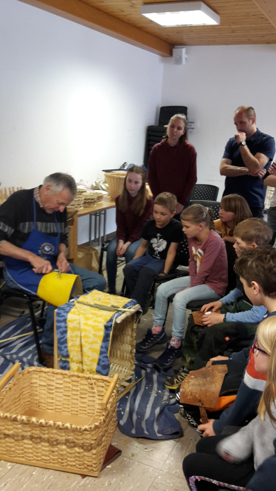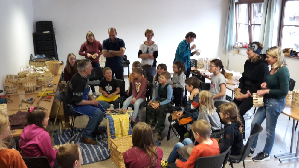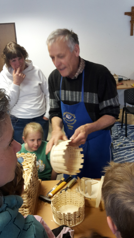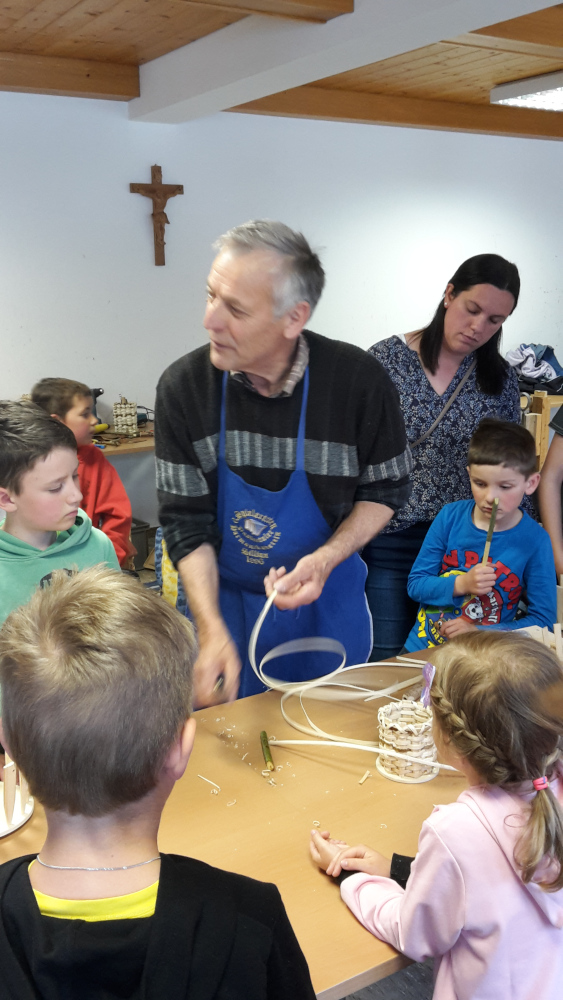 Aus Peddigrohr (lässt sich von Kinderhänden leichter verarbeiten) entstanden Brotkörblen und Stifteköcher, die die Kinder dann stolz mitnehmen konnten.
