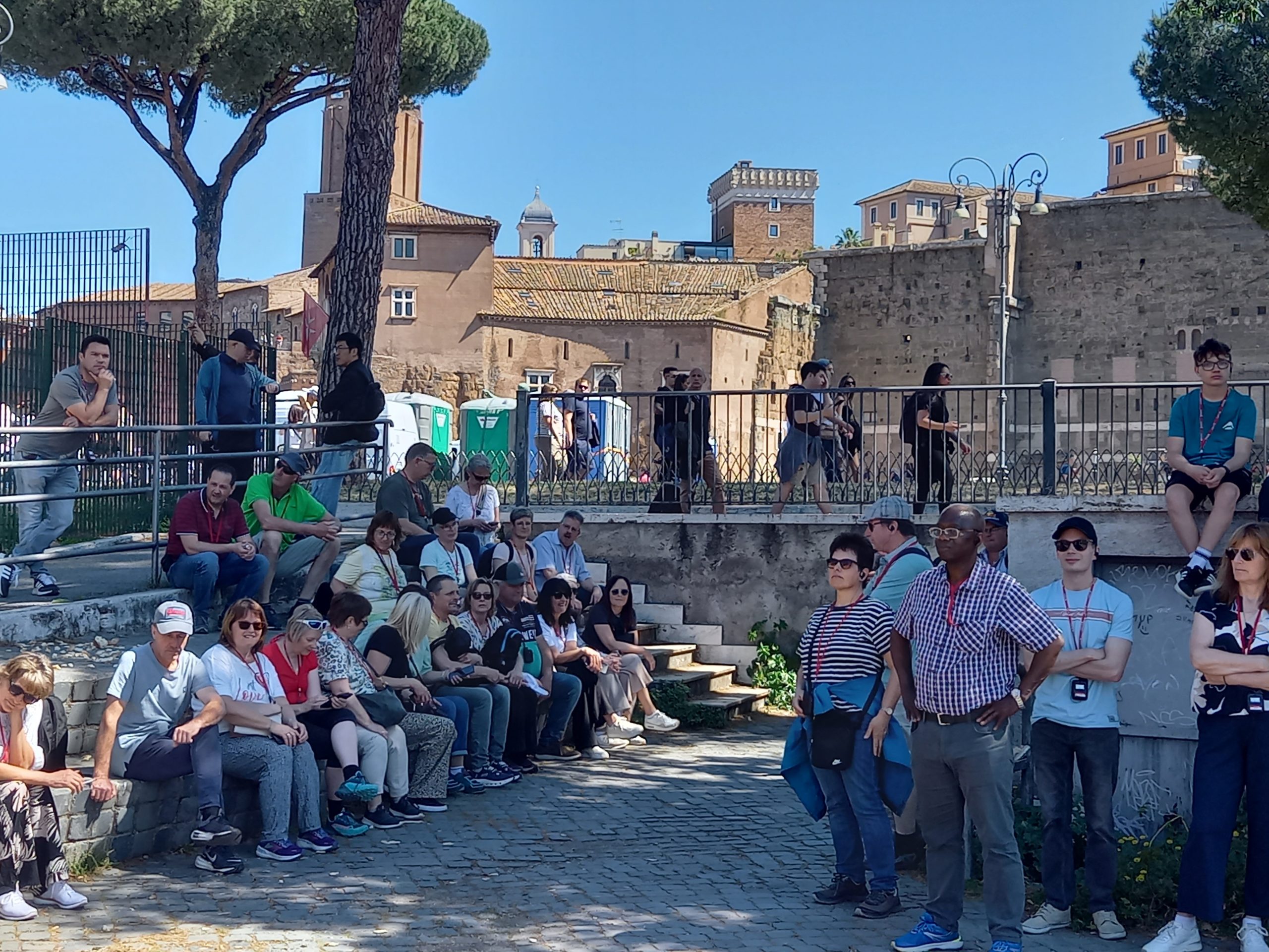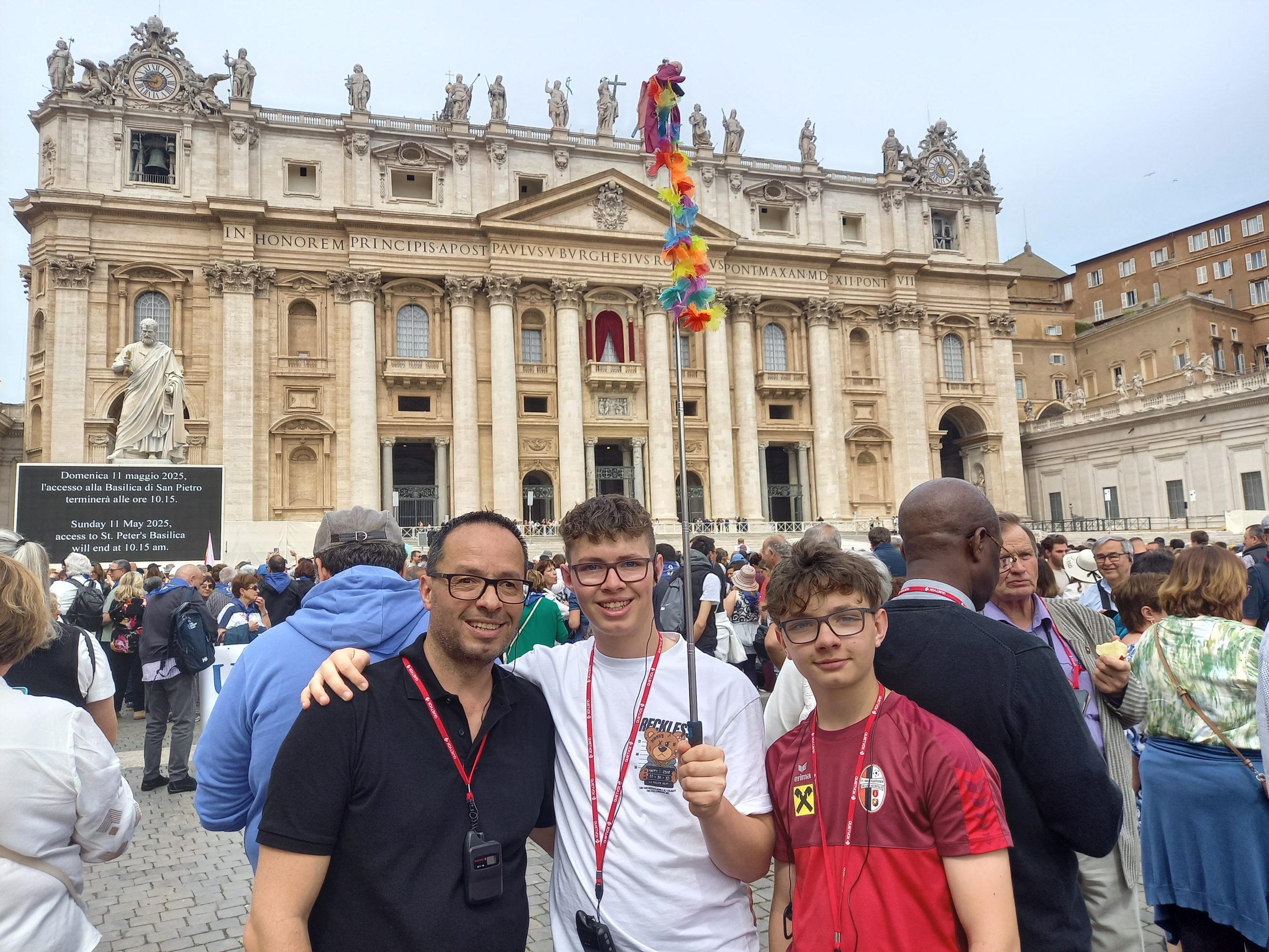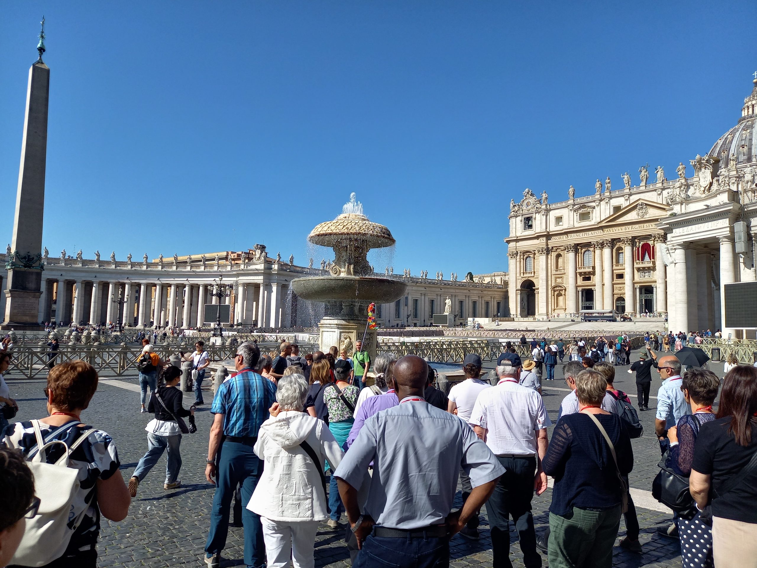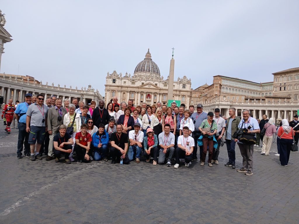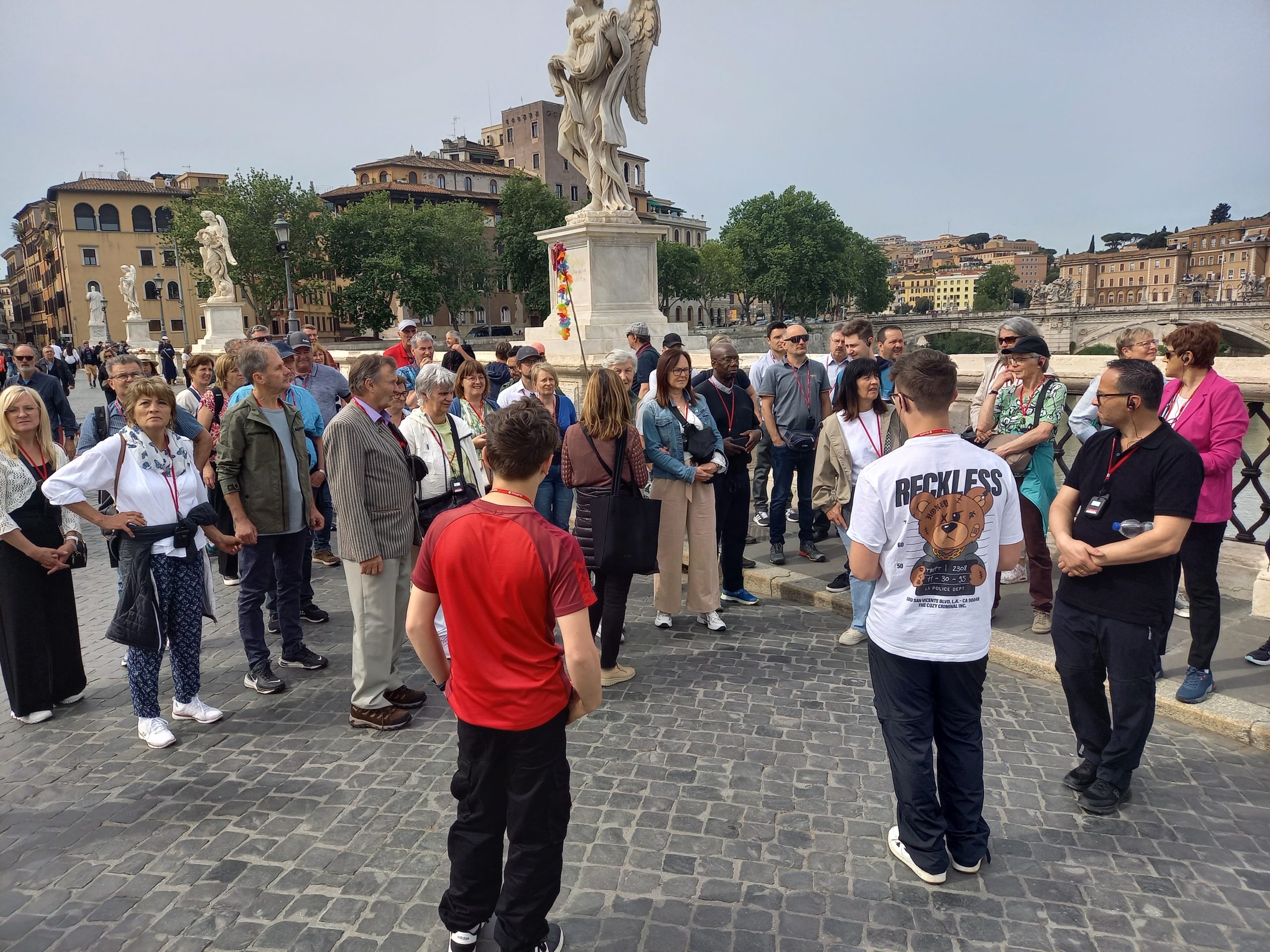 Nach einem intensiven und beeindruckenden Programm am Samstag, machte sich die Gruppe am Sonntag, 11. Mai, zugleich Muttertag, auf zum Petersplatz, um das Angelusgebet mit dem neuen Papst mitzuerleben. Punkt 12 Uhr ging der rote Vorhang der Loggia vom Petersdom auf und Leo XIV. erschien am Balkon, begleitet vom Jubel zehntausender Gläubiger. Seine Botschaft war dieselbe wie bei seiner Wahl vor wenigen Tagen: Der Krieg muss aufhören! FRIEDEN soll überall dort werden, wo Krieg herrscht.