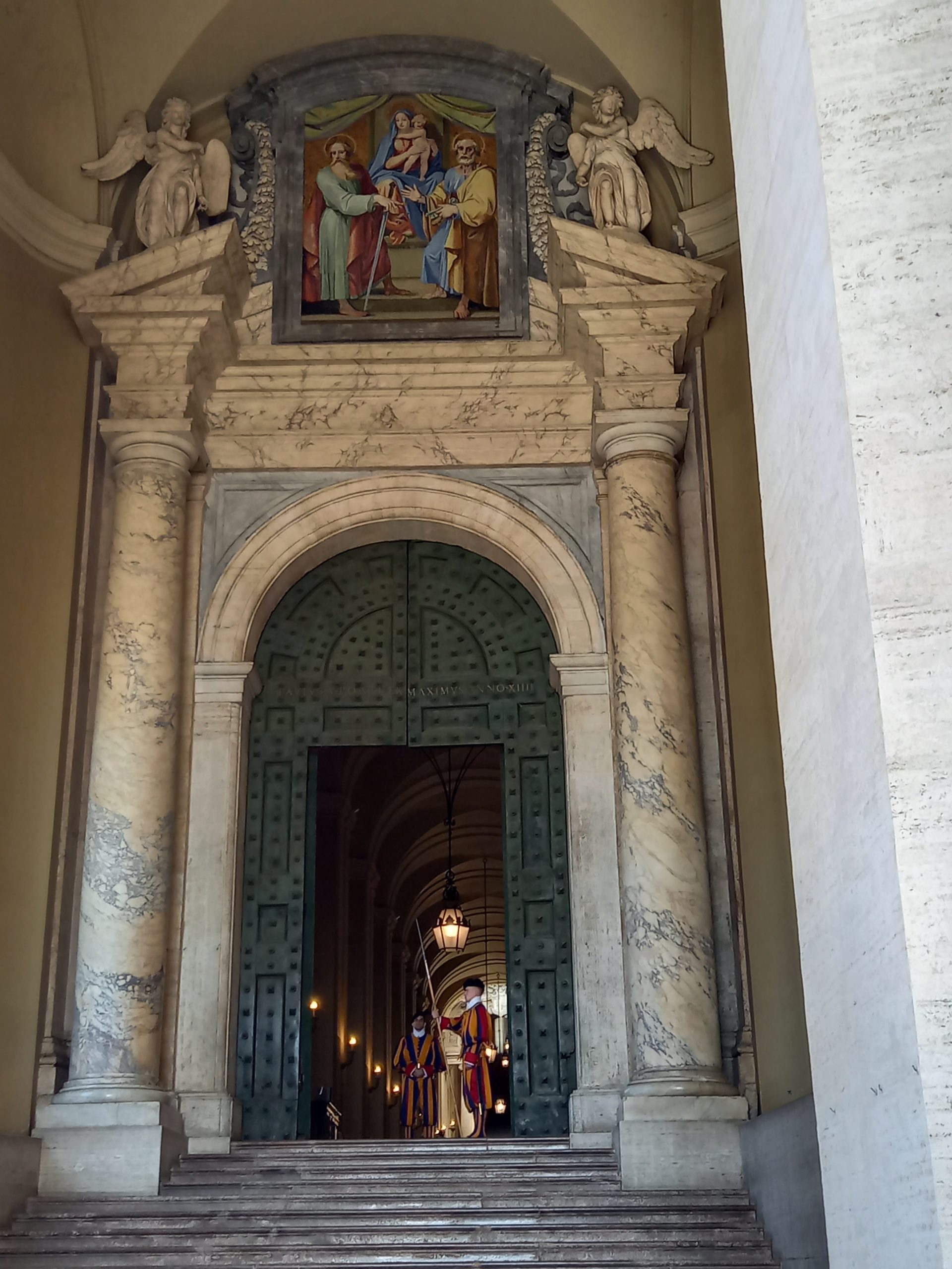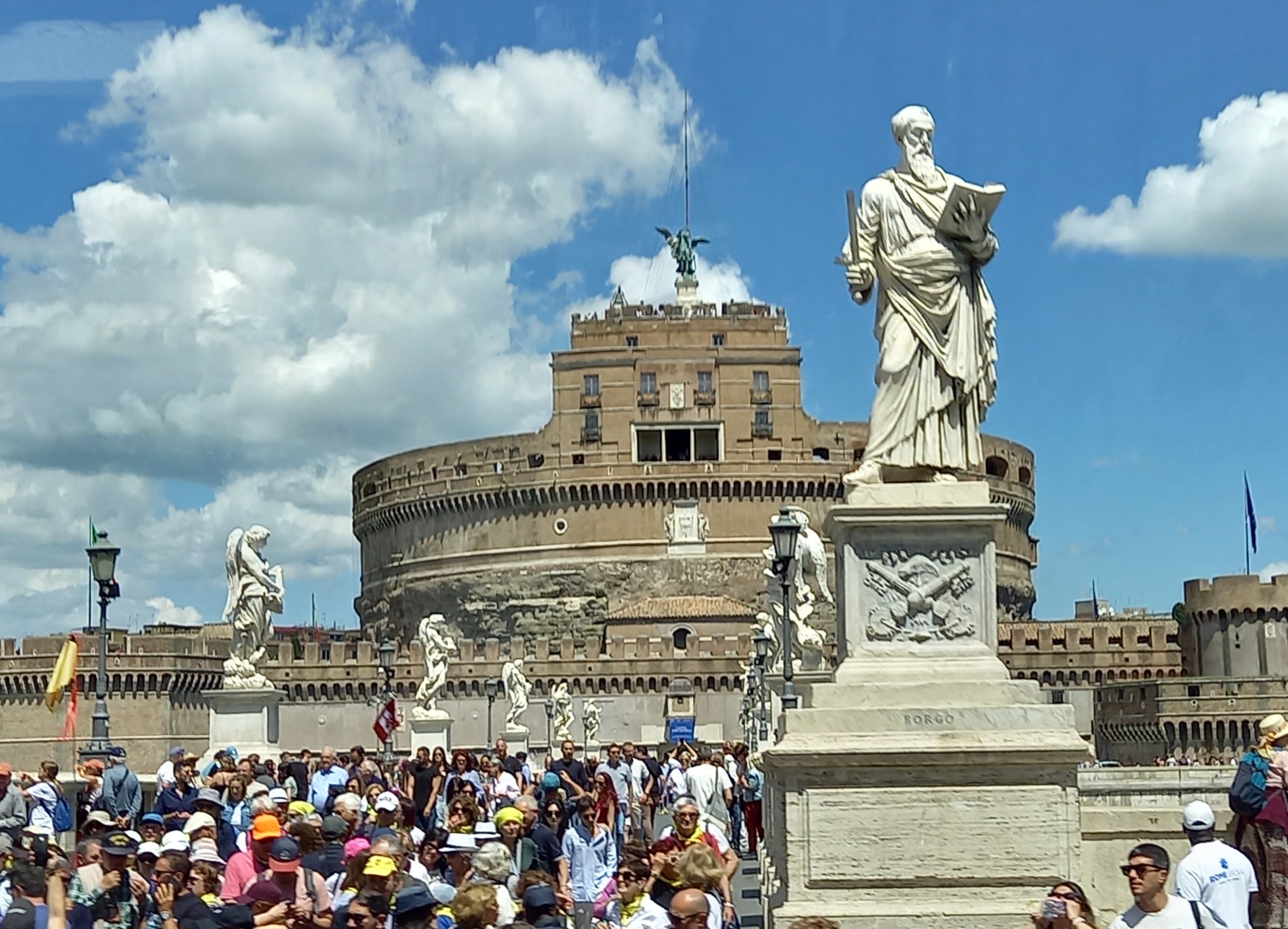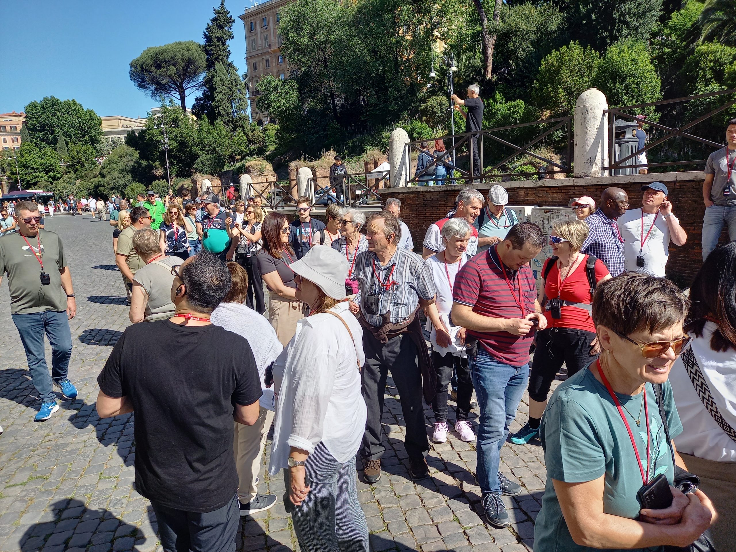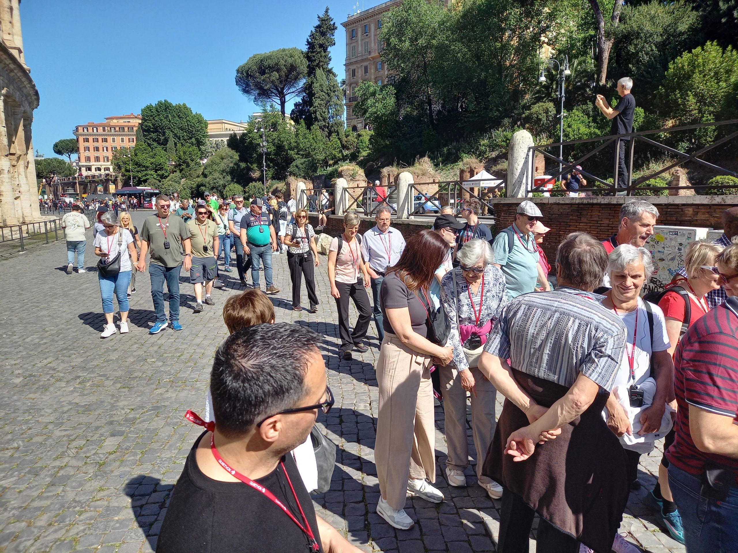 Nach einem intensiven und beeindruckenden Programm am Samstag, machte sich die Gruppe am Sonntag, 11. Mai, zugleich Muttertag, auf zum Petersplatz, um das Angelusgebet mit dem neuen Papst mitzuerleben. Punkt 12 Uhr ging der rote Vorhang der Loggia vom Petersdom auf und Leo XIV. erschien am Balkon, begleitet vom Jubel zehntausender Gläubiger. Seine Botschaft war dieselbe wie bei seiner Wahl vor wenigen Tagen: Der Krieg muss aufhören! FRIEDEN soll überall dort werden, wo Krieg herrscht.
