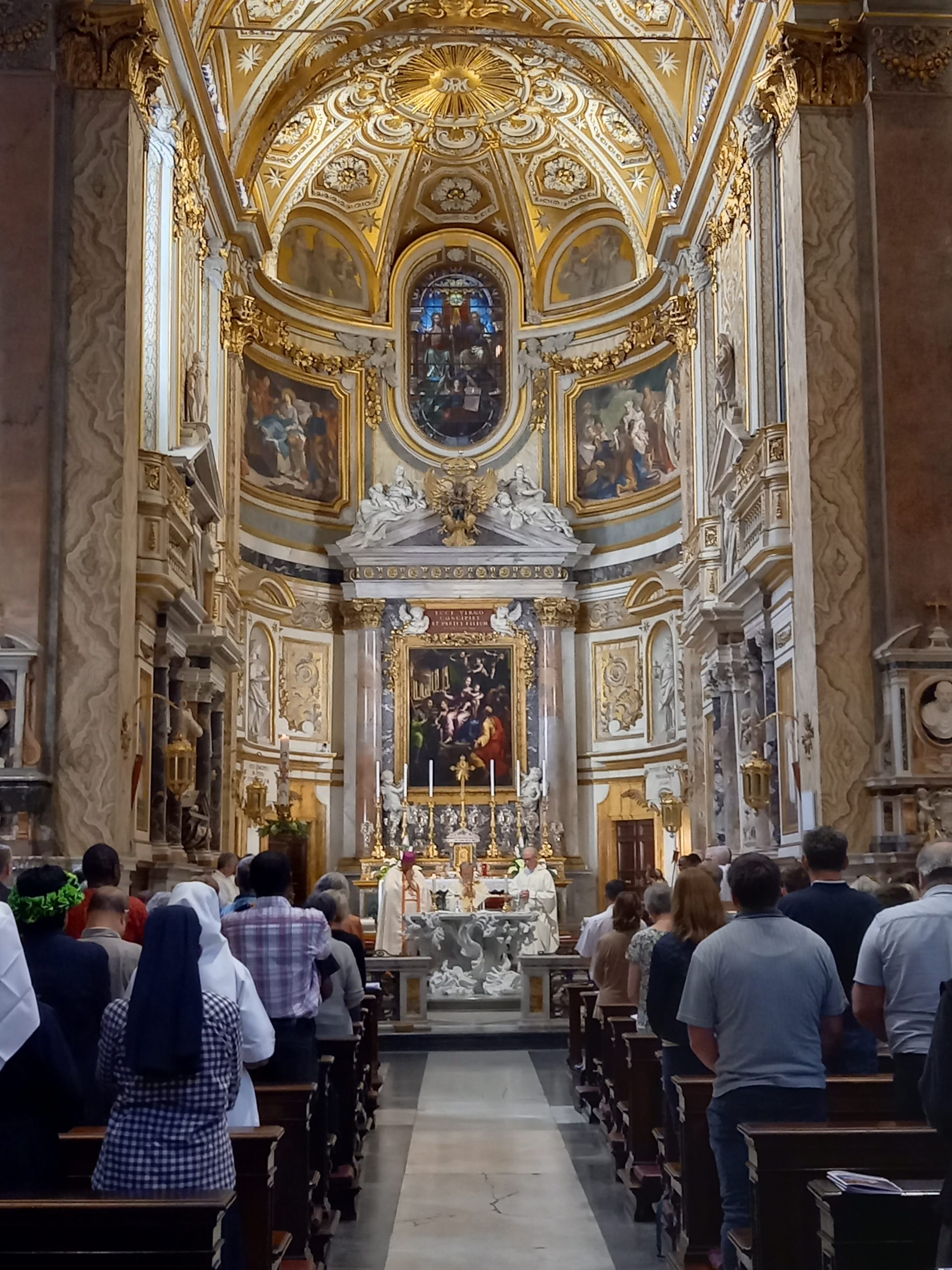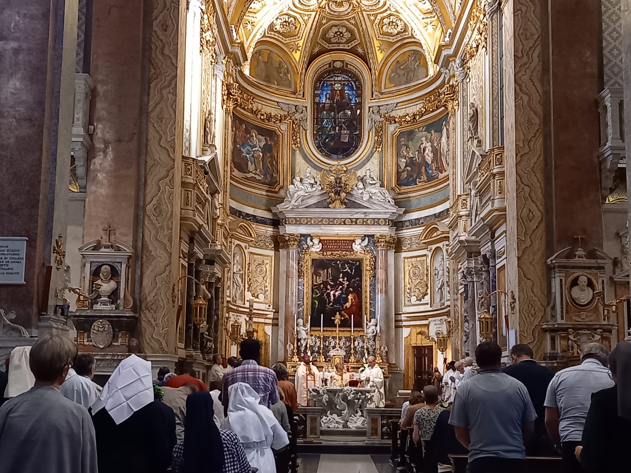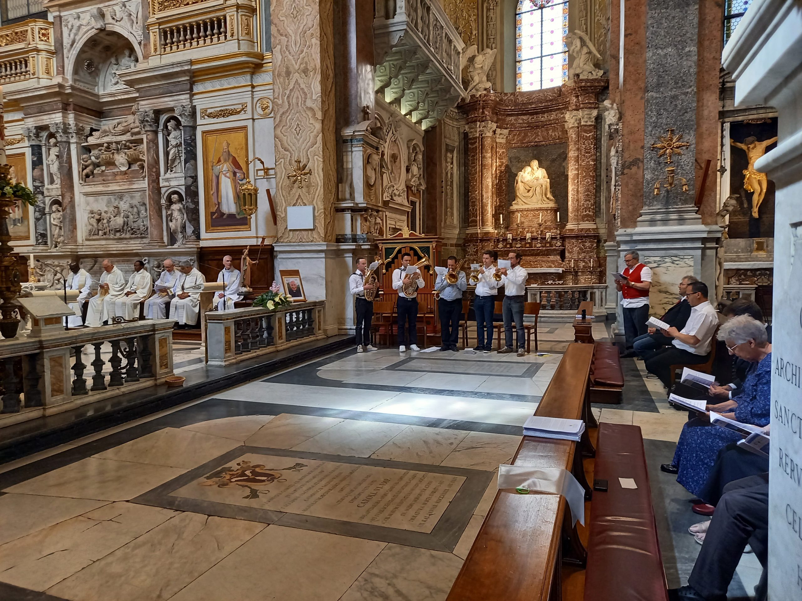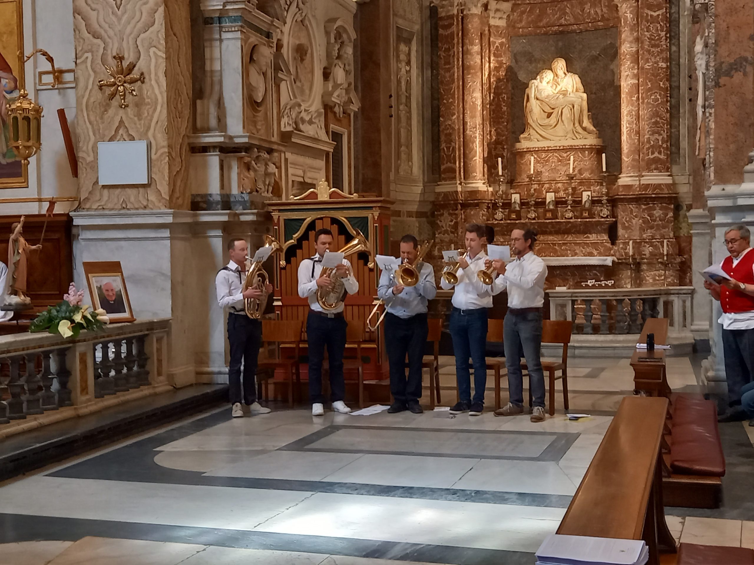 Am Montag, 12.5. begab sich die Gruppe – nach Besichtigung des imposanten Petersdoms – am Nachmittag in die Kirche Santa Maria dell´ Anima, die deutsche katholische Niederlassung in Rom. Dort fand der Festgottesdienst anlässlich des 40-jährigen Bestehens des „Institute of St. Anselm“ statt. Begleitet und festlich umrahmt wurde der Gottesdienst von Bläsern der Musikkapelle Kartitsch mit Unterstützung aus Untertilliach. Mitglieder der Pilgergruppe trugen Texte auf Deutsch vor und alle sangen kräftig zur Messe von Joseph Haydn mit. Der Festgottesdienst kann auf youtube noch angeschaut werden: https://www.youtube.com/live/U-m9suWJkgM