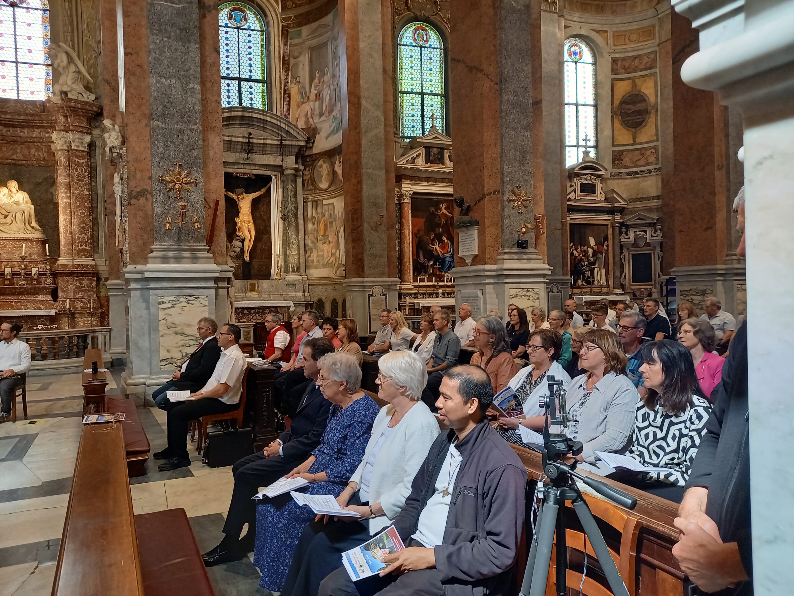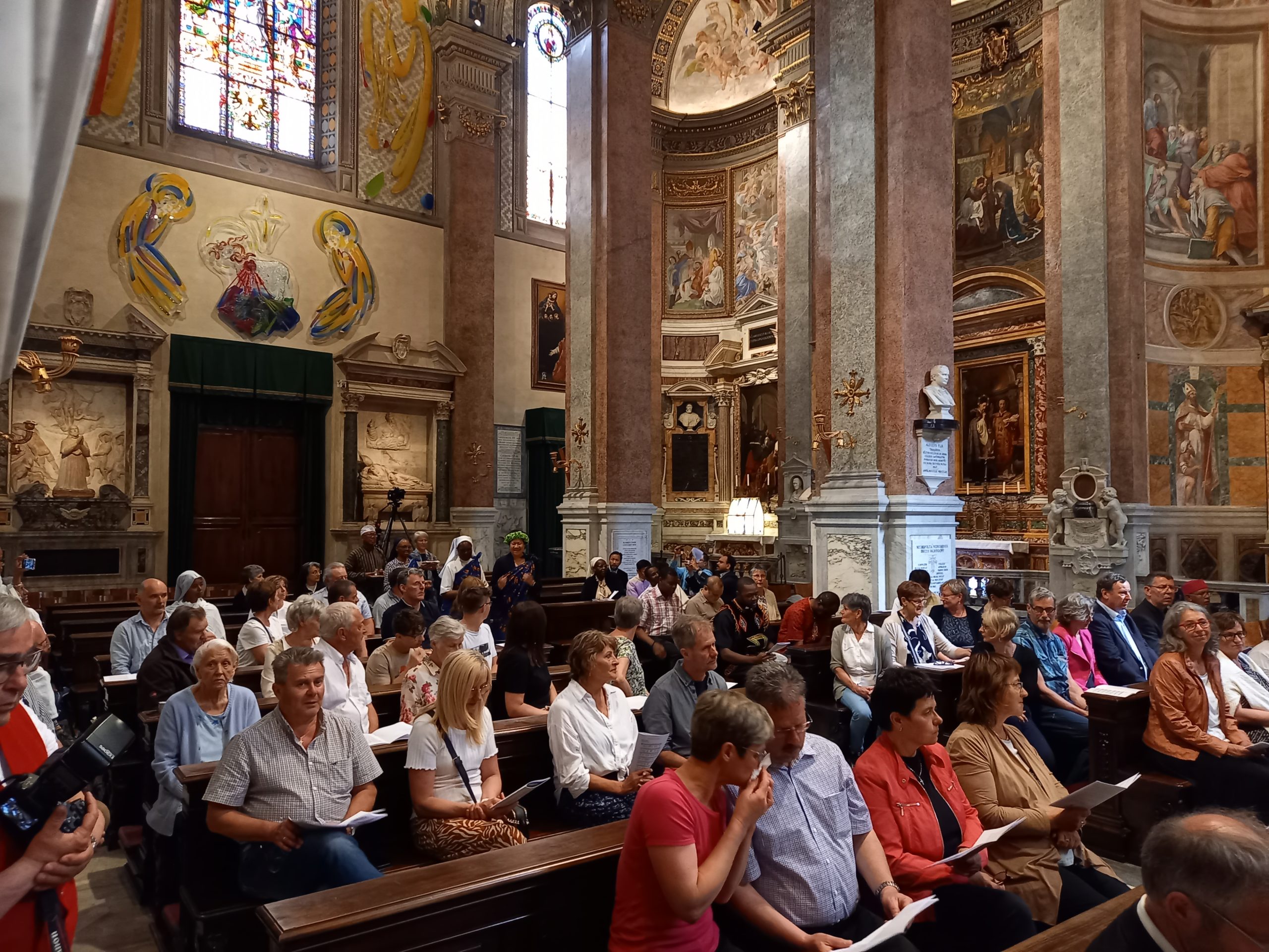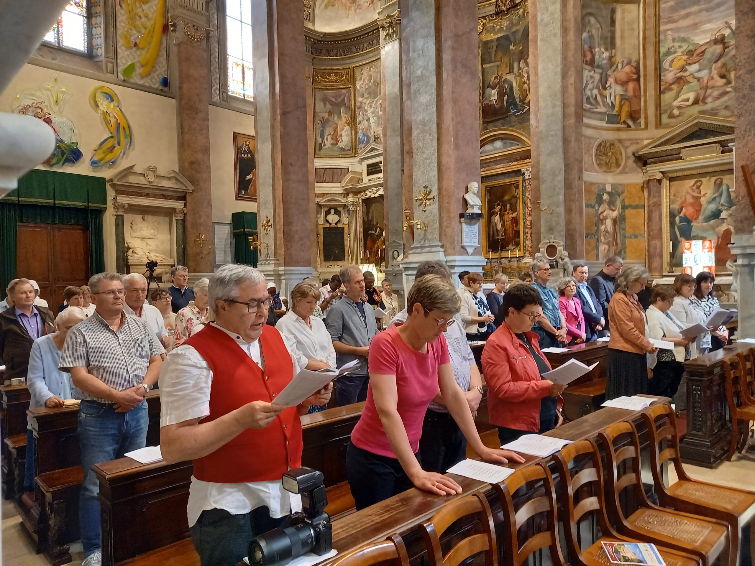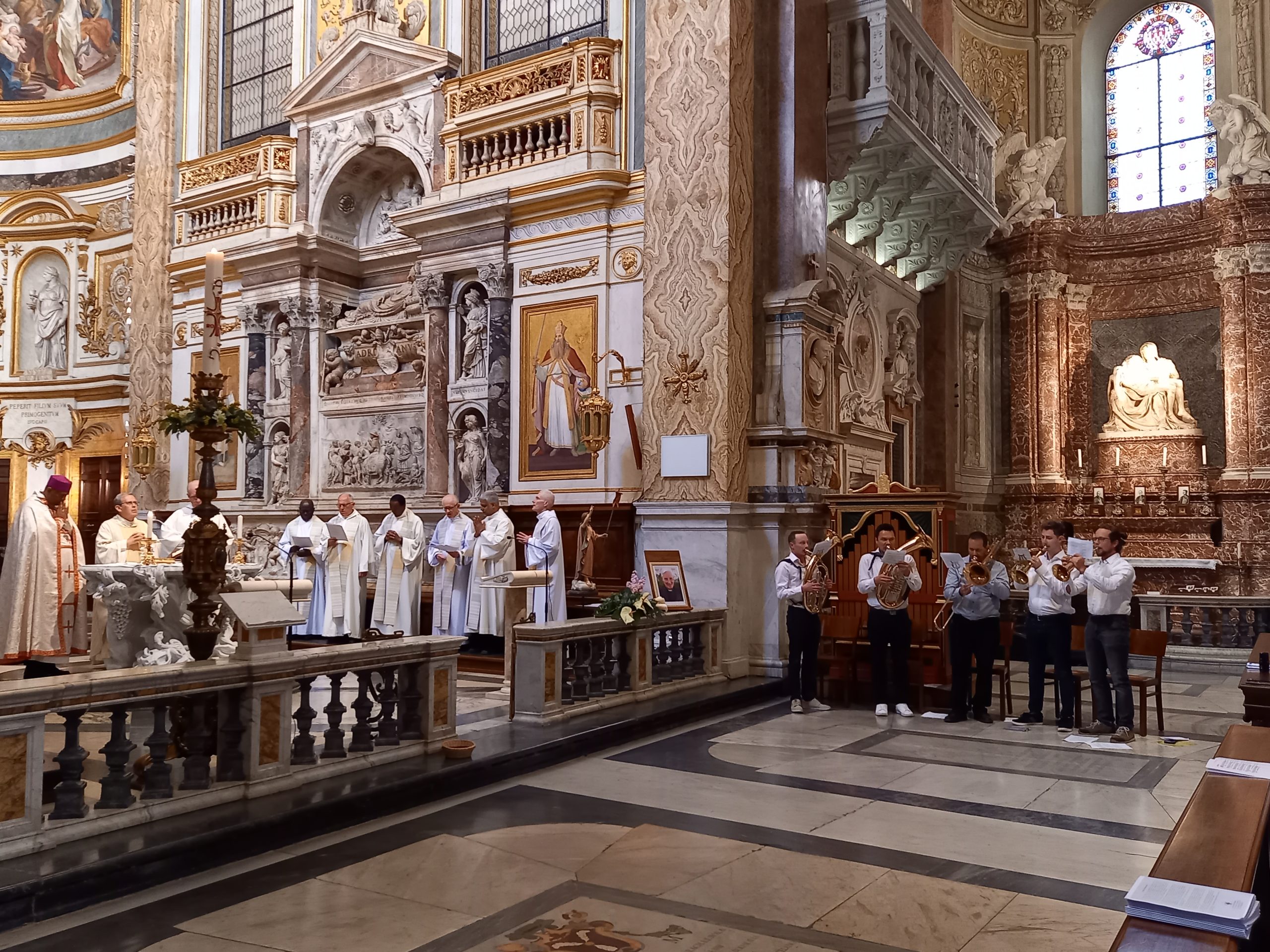 Am Montag, 12.5. begab sich die Gruppe – nach Besichtigung des imposanten Petersdoms – am Nachmittag in die Kirche Santa Maria dell´ Anima, die deutsche katholische Niederlassung in Rom. Dort fand der Festgottesdienst anlässlich des 40-jährigen Bestehens des „Institute of St. Anselm“ statt. Begleitet und festlich umrahmt wurde der Gottesdienst von Bläsern der Musikkapelle Kartitsch mit Unterstützung aus Untertilliach. Mitglieder der Pilgergruppe trugen Texte auf Deutsch vor und alle sangen kräftig zur Messe von Joseph Haydn mit. Der Festgottesdienst kann auf youtube noch angeschaut werden: https://www.youtube.com/live/U-m9suWJkgM