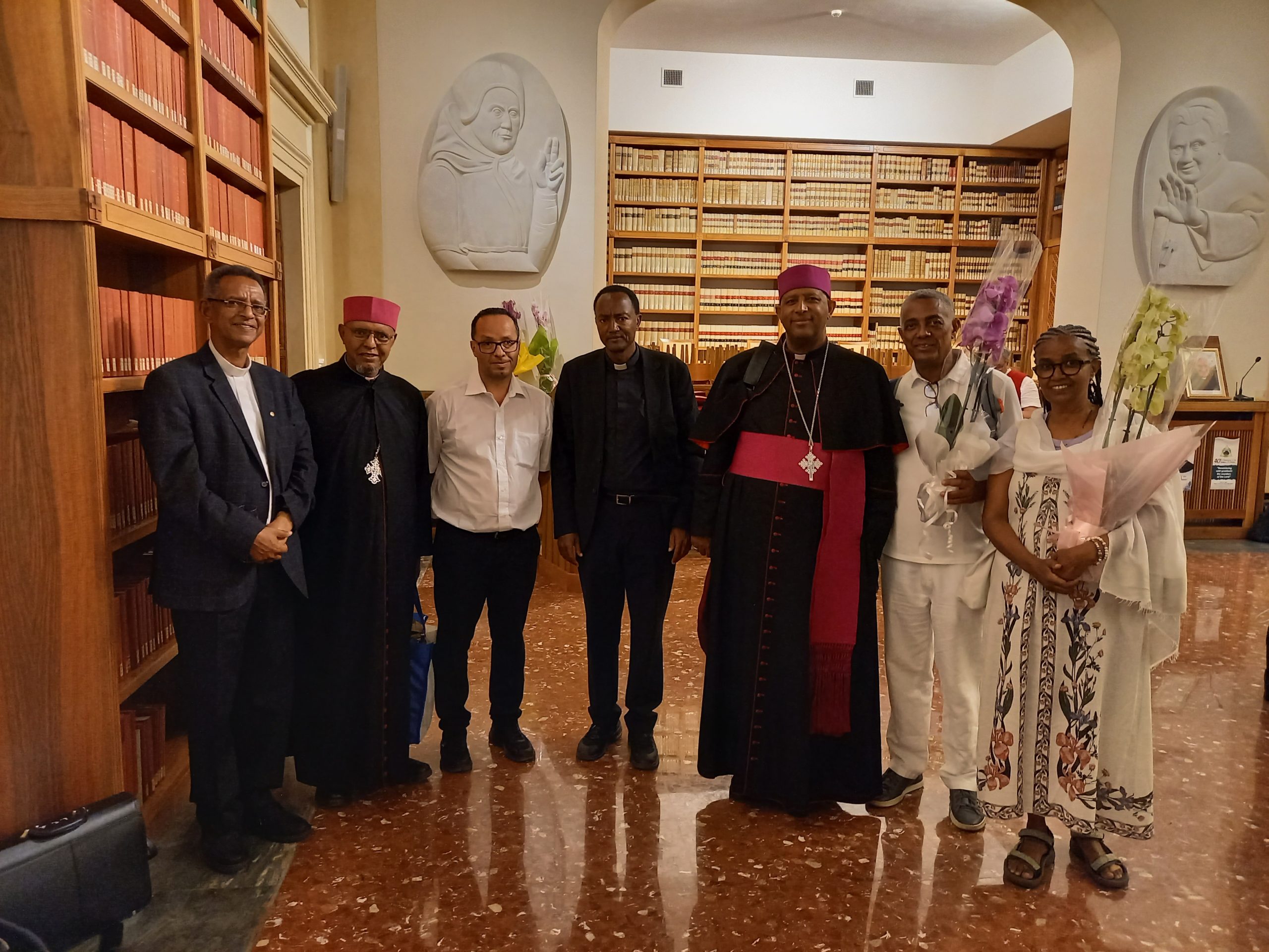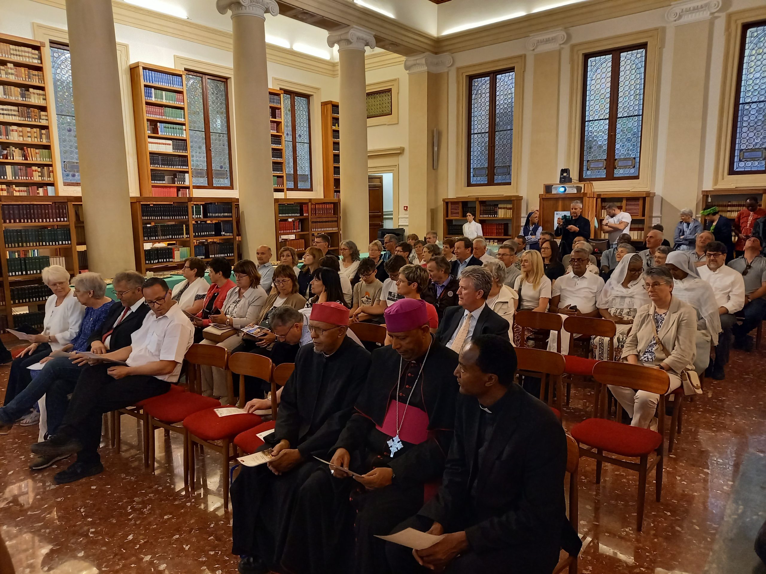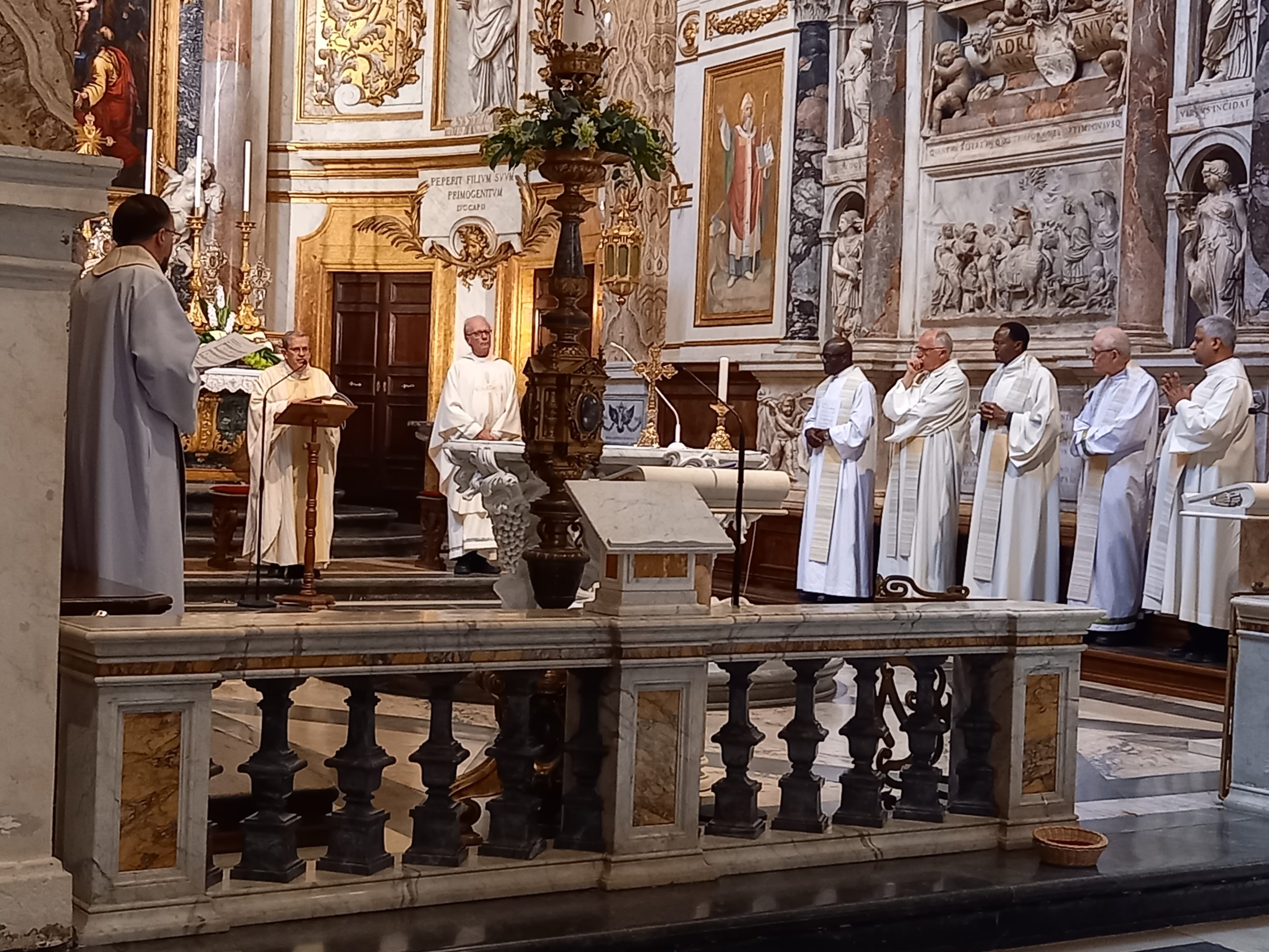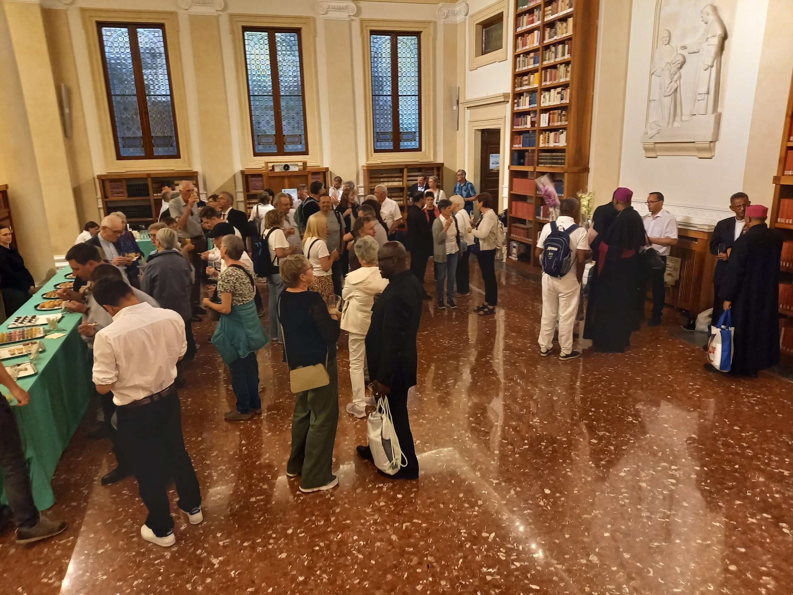 Im Anschluss fand in der beeindruckenden Bibliothek der Anima der Festakt zum Jubiläum statt. Fanfaren der Bläser lockerten die zahlreichen Reden und Videovorführungen auf, in denen das Wirken des aus Kartitsch stammenden Missionars Len Kofler gezeigt und gewürdigt wurde. Für das weitere Bestehen des Instituts sind die Hoffnungen auf den Orden der Salesianer gerichtet, dessen Generaloberer, Don Fabio Attard, den Festgottesdienst zelebrierte und auch beim Festakt sprach. Auch der Festakt kann im Internet noch gesehen werden: https://www.youtube.com/live/r3N7-ydbyvw