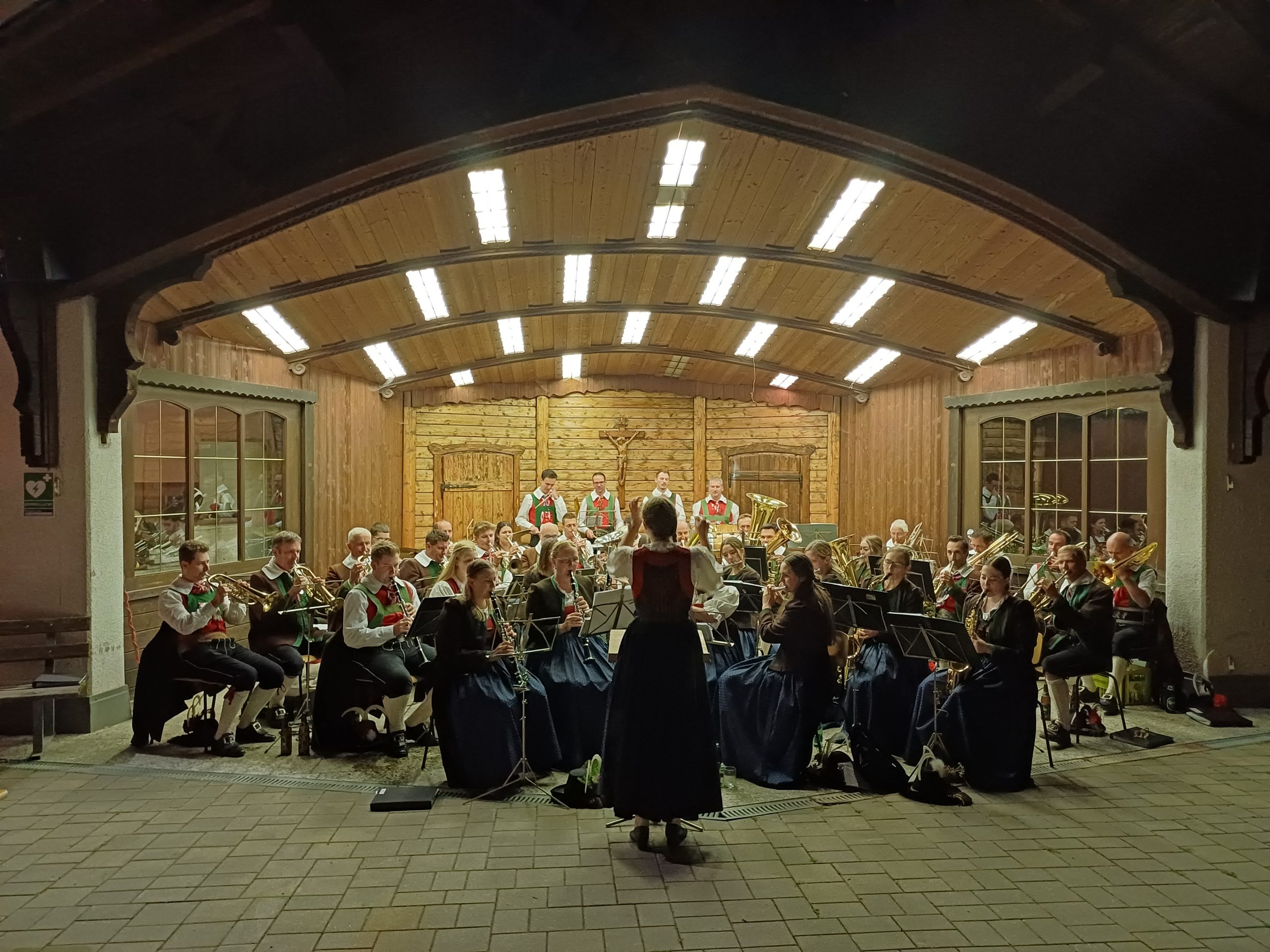 Schneidig marschierten die Musikantinnen und Musikanten der Bundesmusikkapelle Kartitsch, unter der Leitung von Kapellmeisterin Kristina Leiter, dann um kurz vor 20 Uhr beim Pavillon auf und erfreuten die vielen Einheimischen und Gäste mit einem abwechslungsreichen Abendkonzert, mit traditionellen Märschen und Stücken sowie modernen Klängen und Tönen.