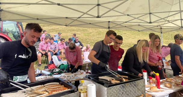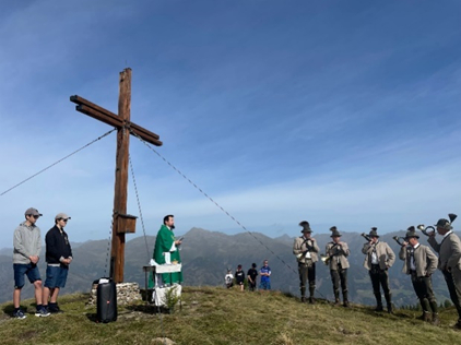 Am 8. September 2024 feierten wir unsere traditionelle Bergmesse am Dorfberg. Am frühen Morgen trafen wir uns beim Dorfplatz und luden alles auf unsere Fahrzeuge auf, wo wir mit Mulli und Traktor hinauf zu dem gewohnten „Platzl“ fuhren. Mit vereinten Kräften stellten wir ein kleines Zelt und die Bänke und Tische auf. Pünktlich um 10.30 Uhr startete die heilige Messe mit Pfarrer Silvo und der musikalischen Umrahmung der Jagdhornbläser. Danach verwöhnte die Landjugend alle Wanderer mit Speis und Trank während Nina und Marissa mit Ziehharmonikaklängen für eine angenehme Atmosphäre sorgt. Es freut uns, dass trotz des unverlässlichen Wetters so viele Menschen mit uns feierten.