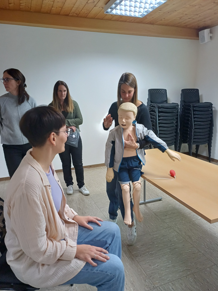 So fand unter großem Interesse am 04. November 2025 ein Informationsabend mit praktischem Übungsteil zum Thema „Kindernotfall! Was tun?“ im Kultursaal statt.